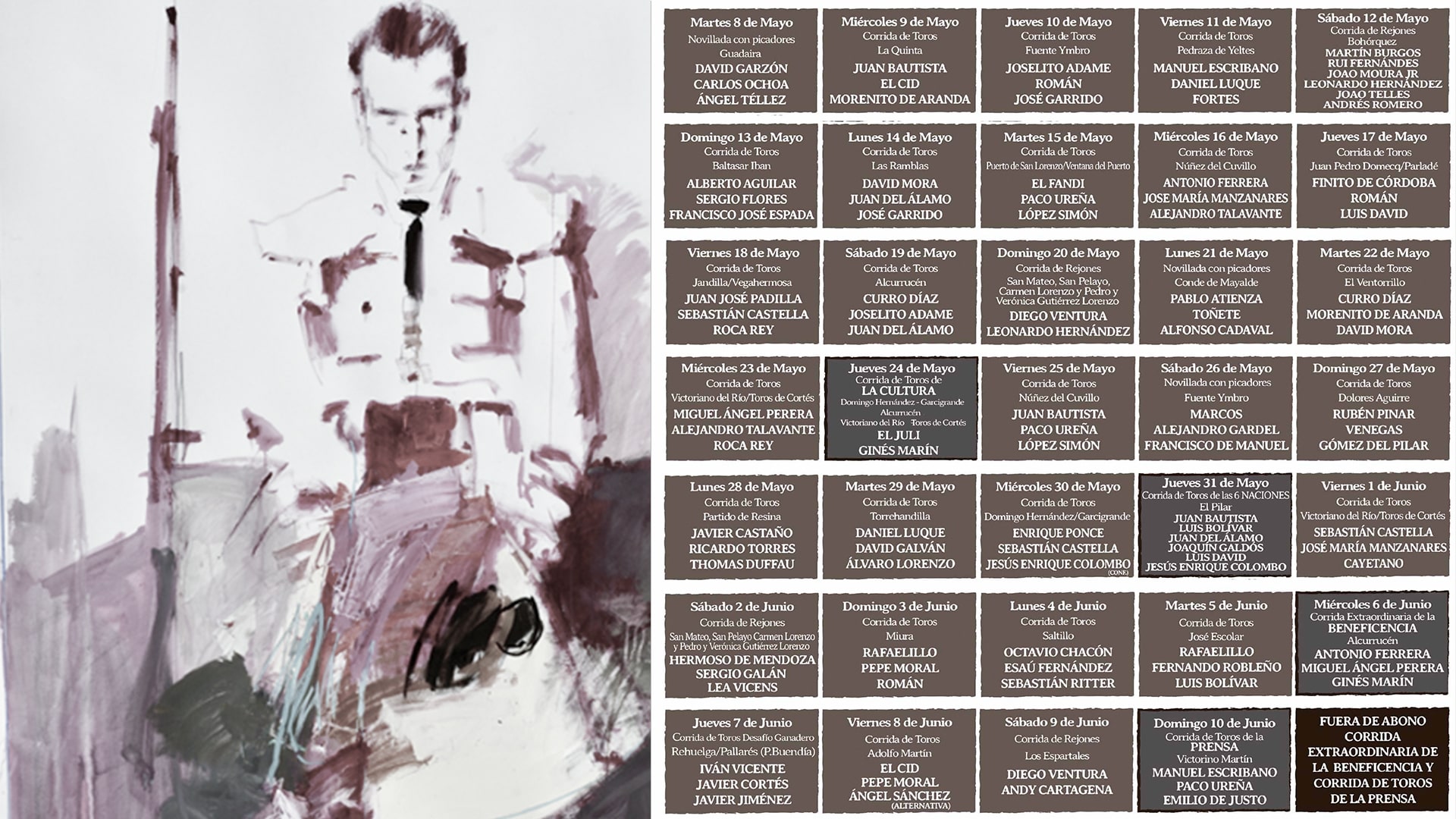 • Miércoles 6 de junio. Corrida Extraordinaria de la Beneficencia. Toros de Alcurrucén para Antonio Ferrera, Miguel Ángel Perera y Ginés Marín.